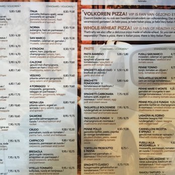 italian pizza menu
