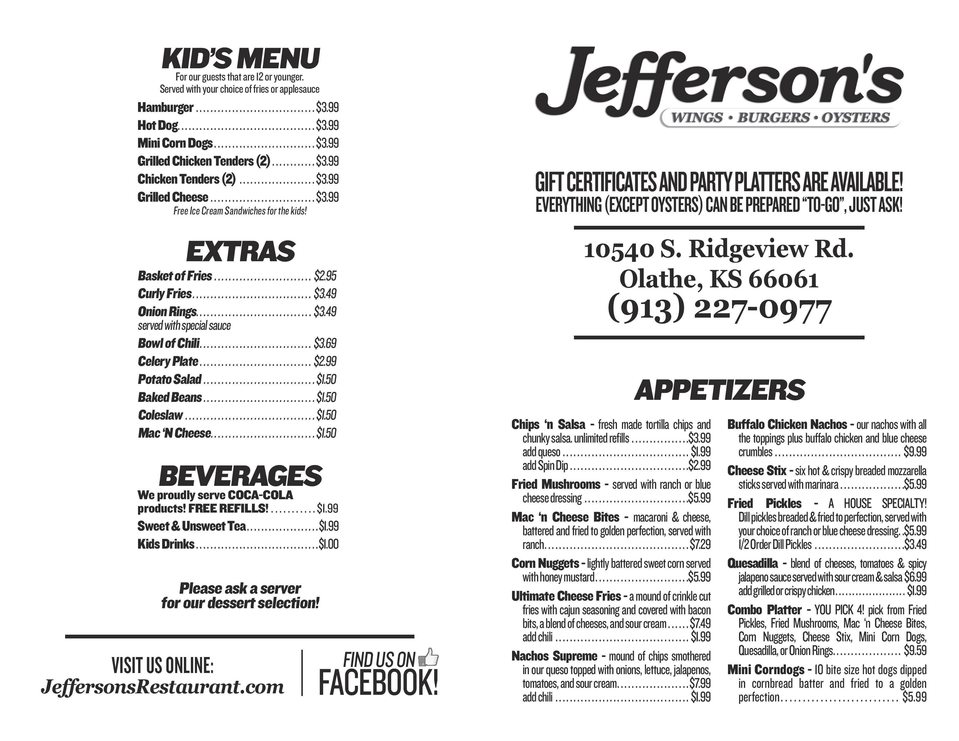 jeffersons menu