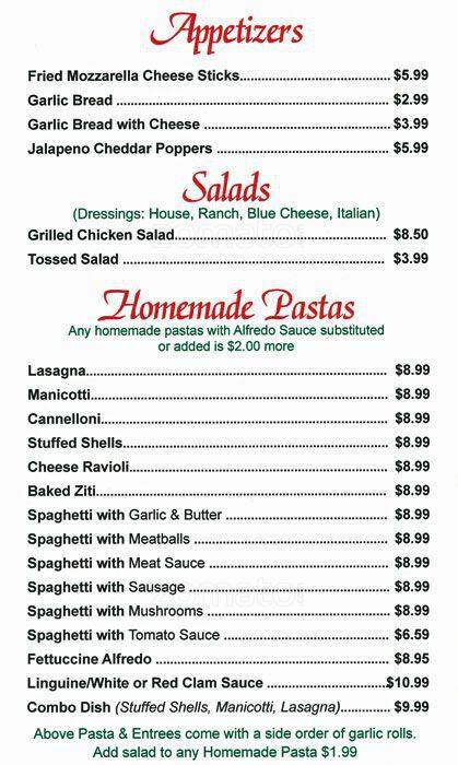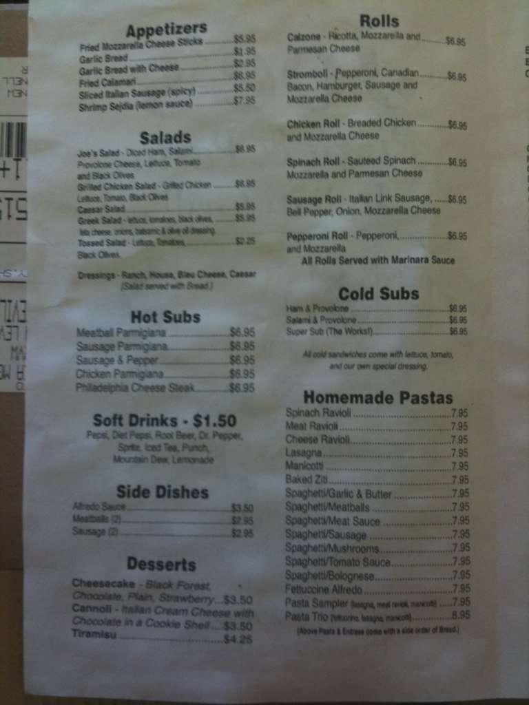 joe's italian menu