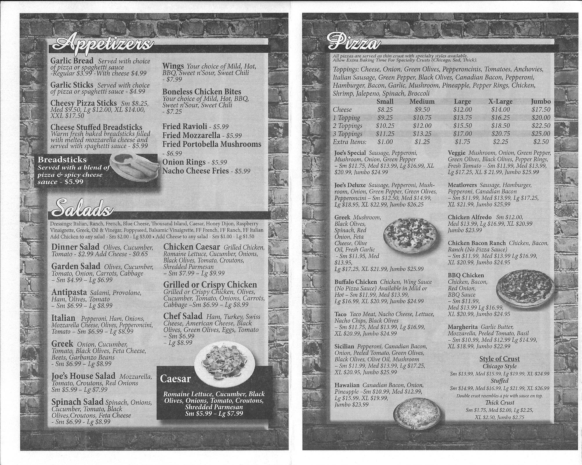 joe's pizza and pasta menu