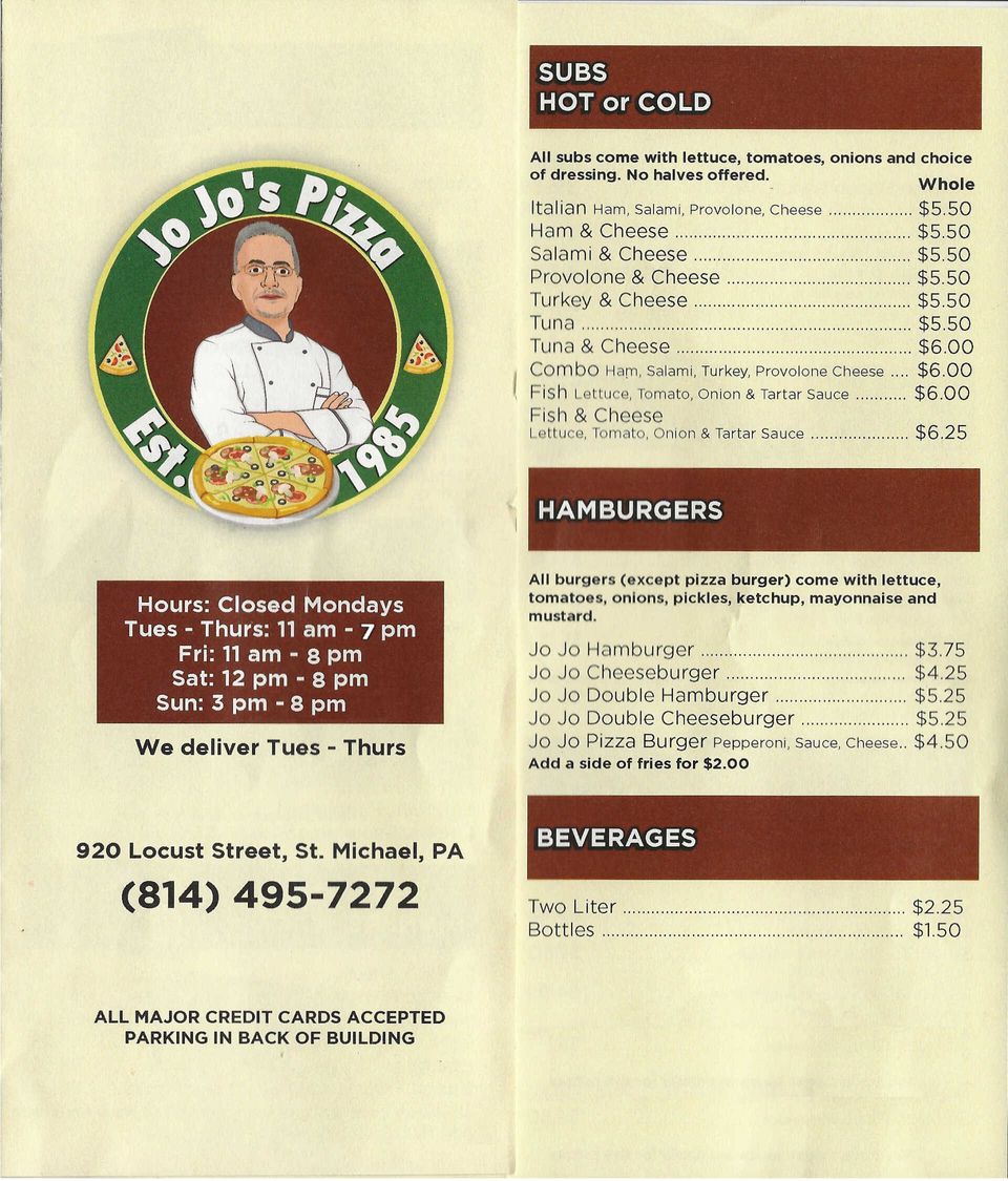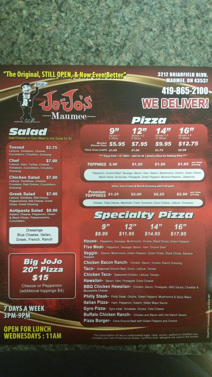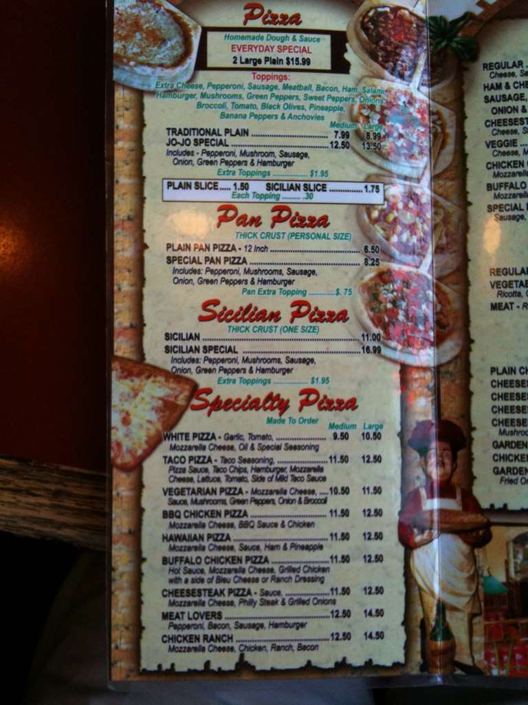 jojo's pizza menu