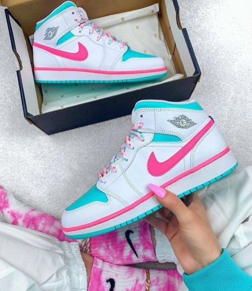 jordan 1 mid white pink green soar