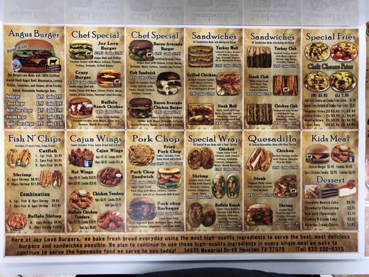 joy love burger menu