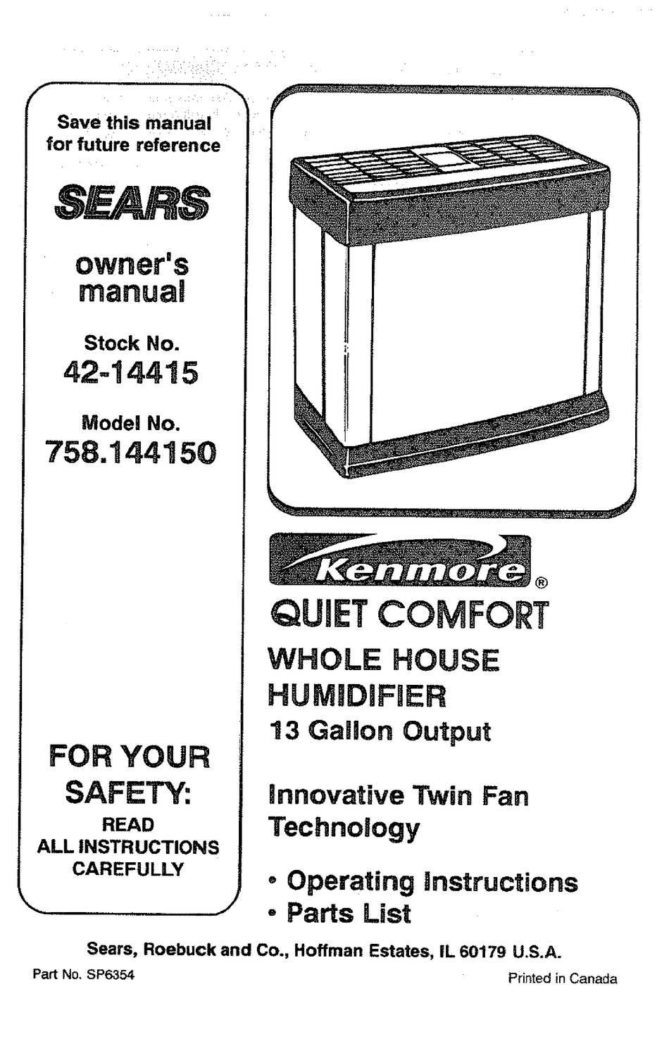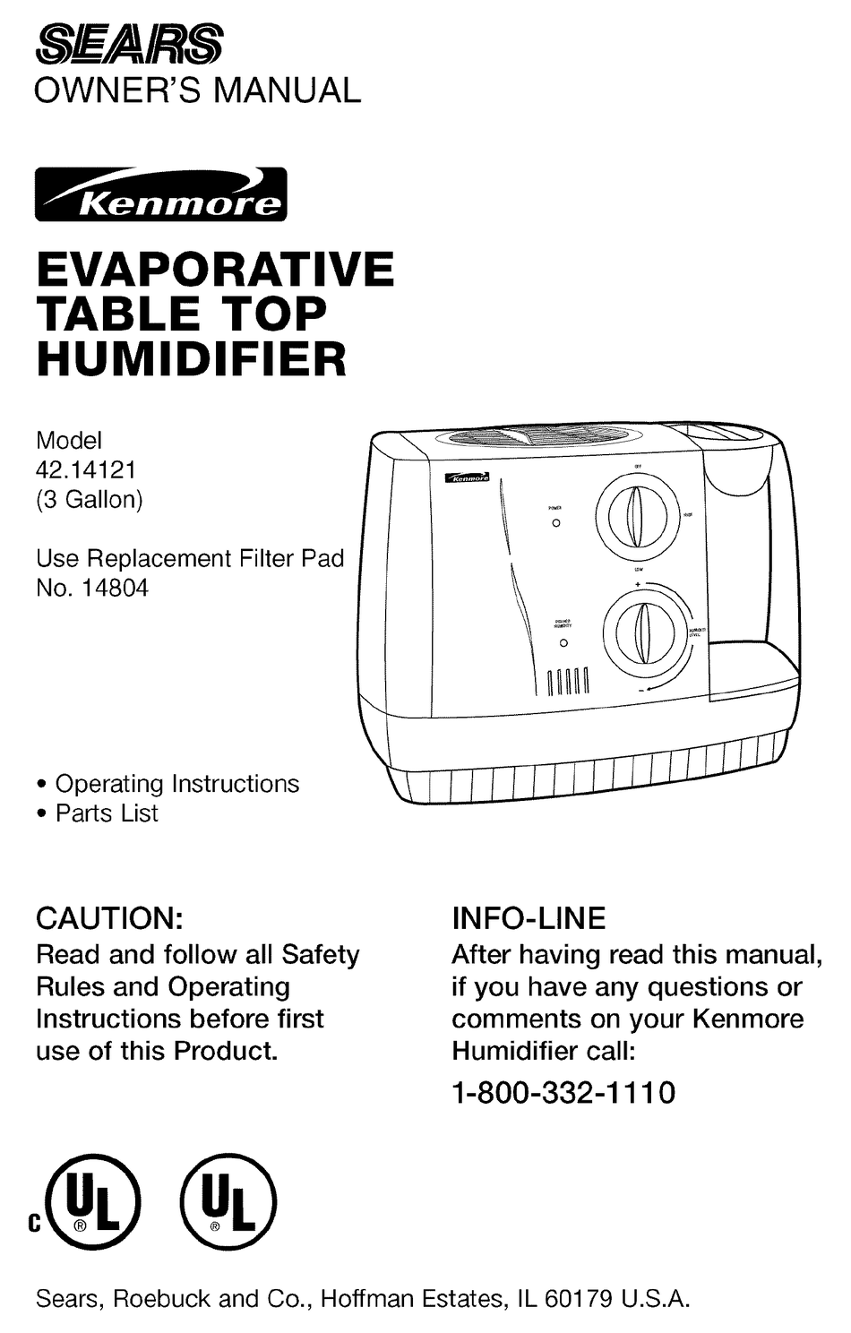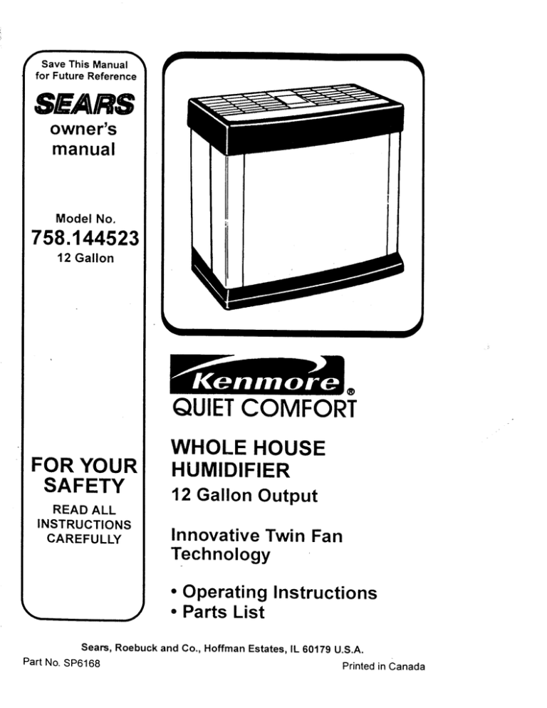 kenmore 12 gallon evaporative humidifier