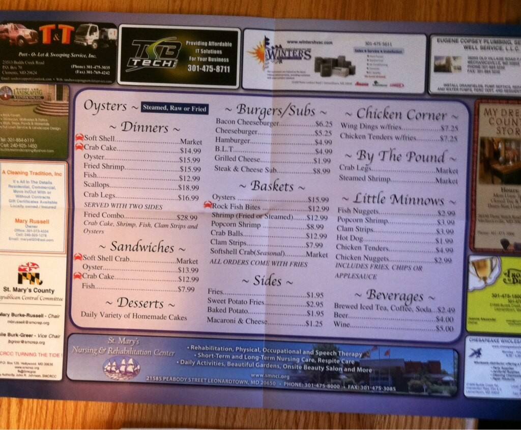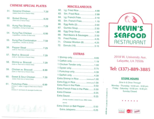 kevin's seafood menu