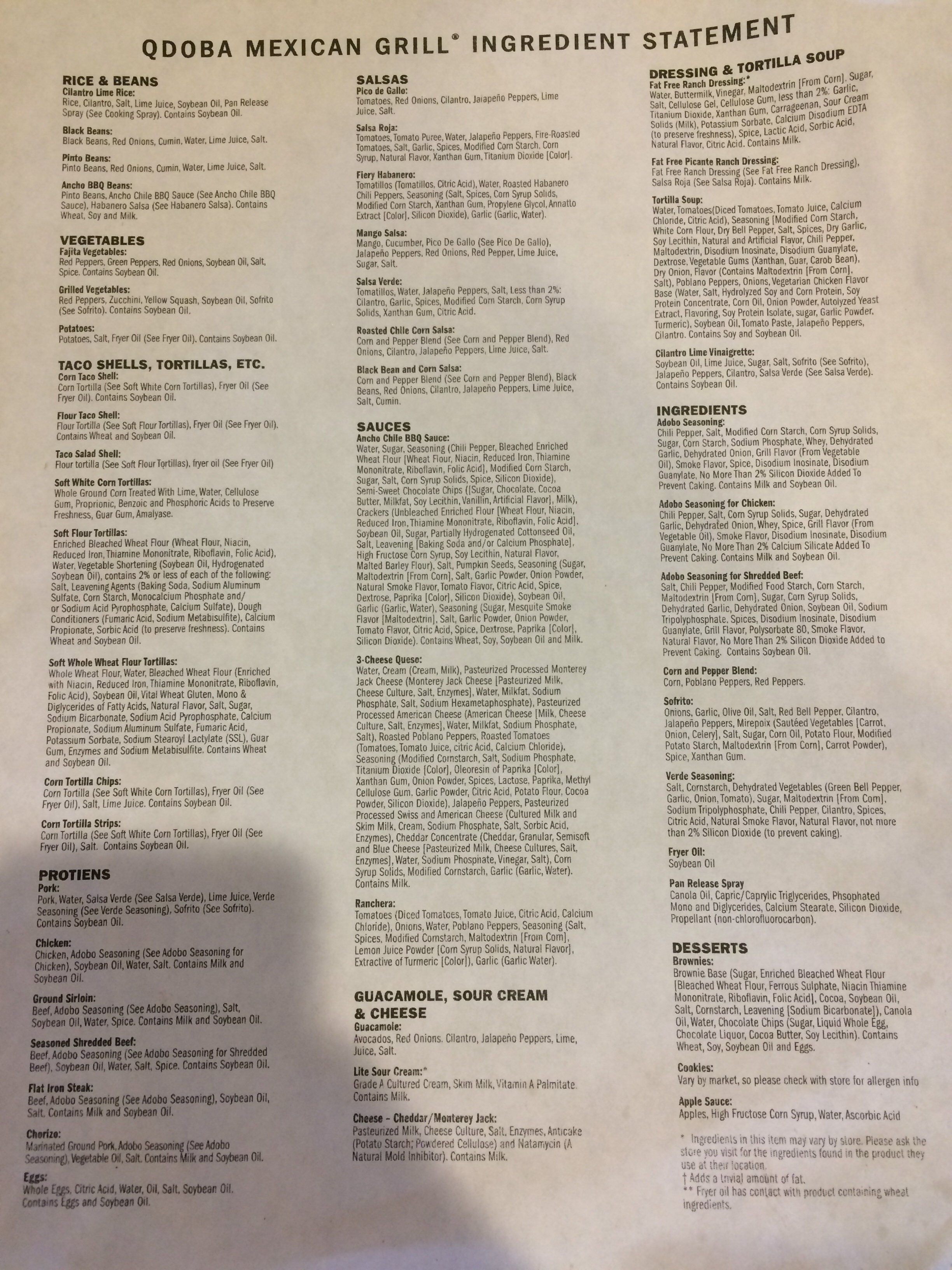 kfc menu allergy
