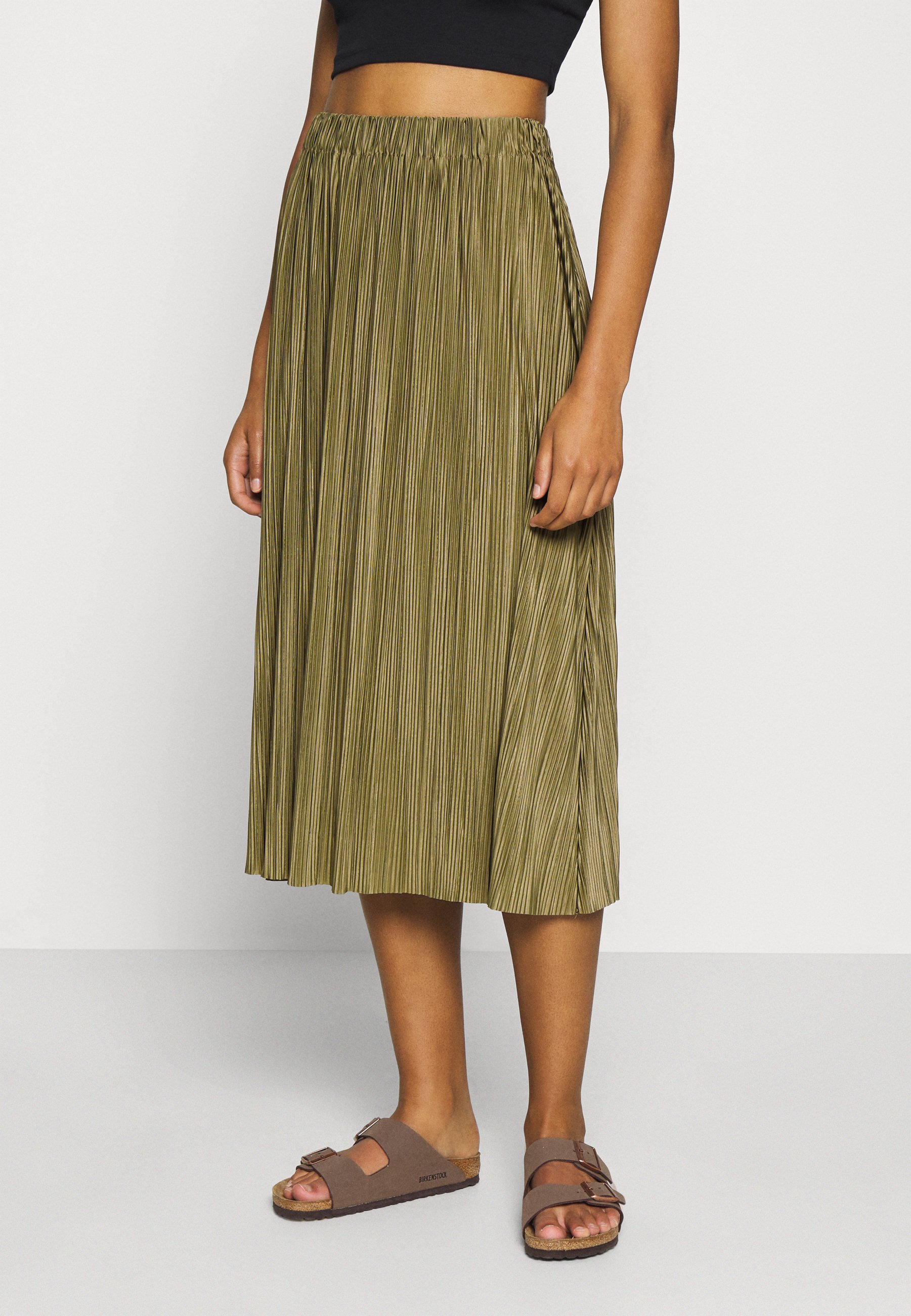 khaki pleated skirt