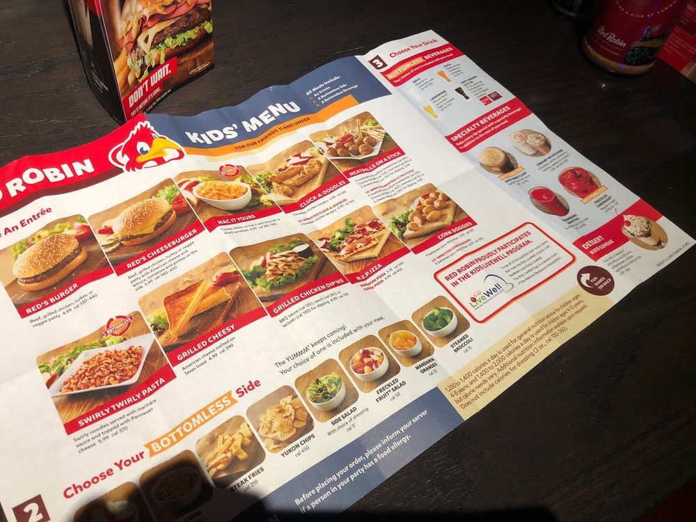 kids menu at red robin