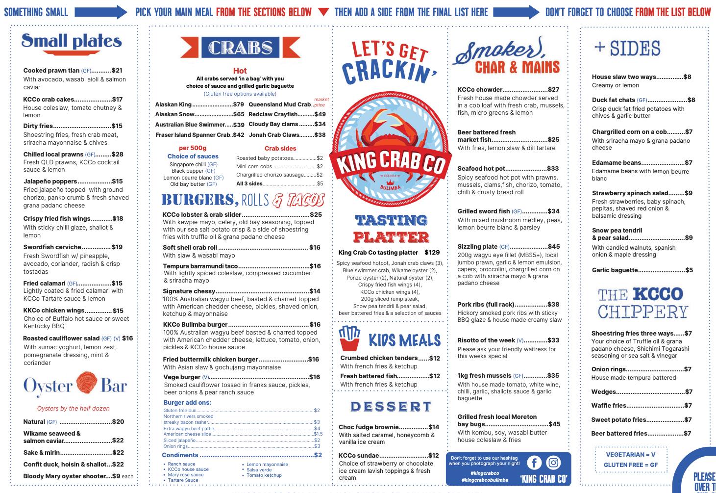 king crab menu