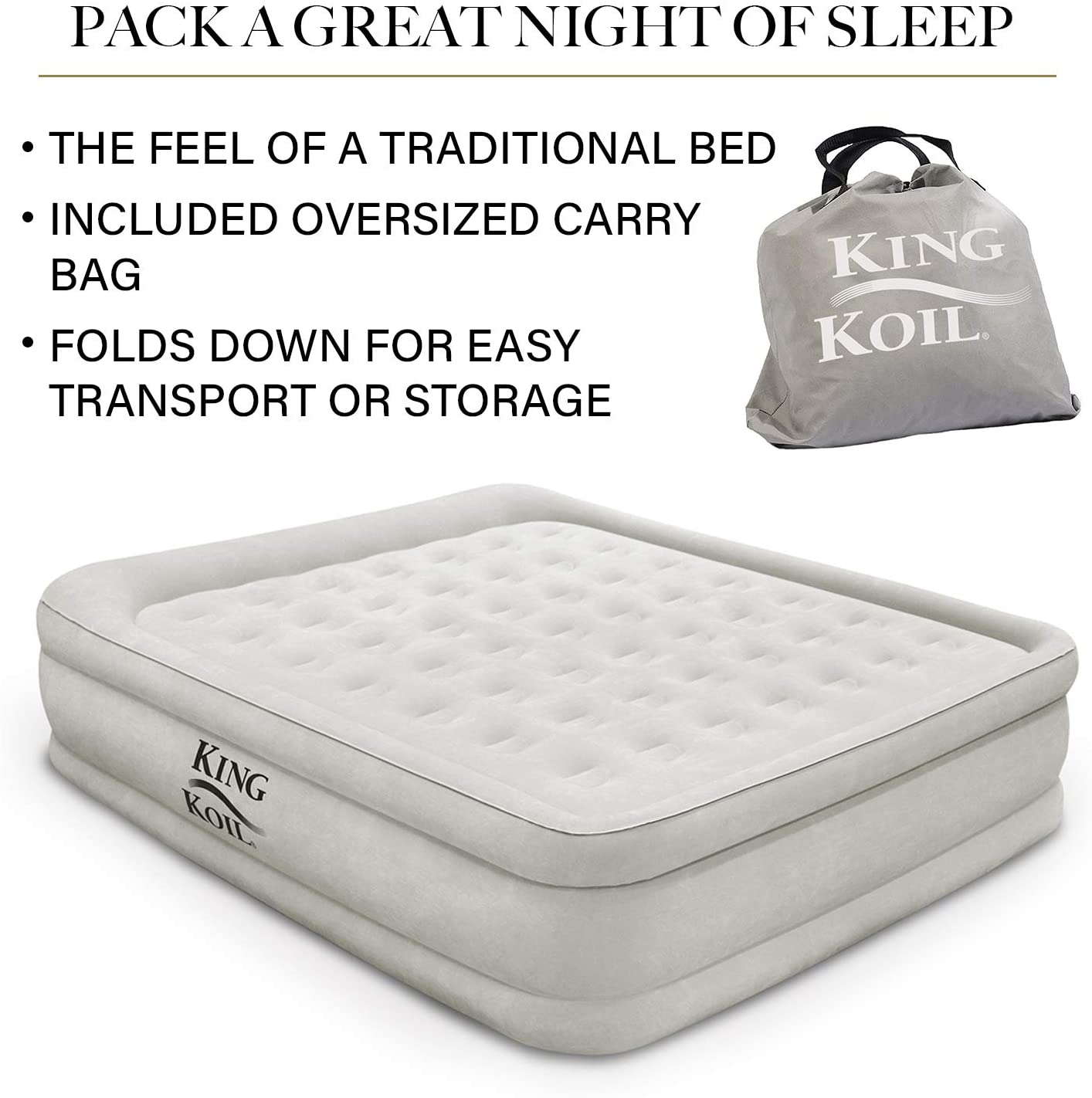 king koil luxury raised airbed with builtin 120v ac high capacity int