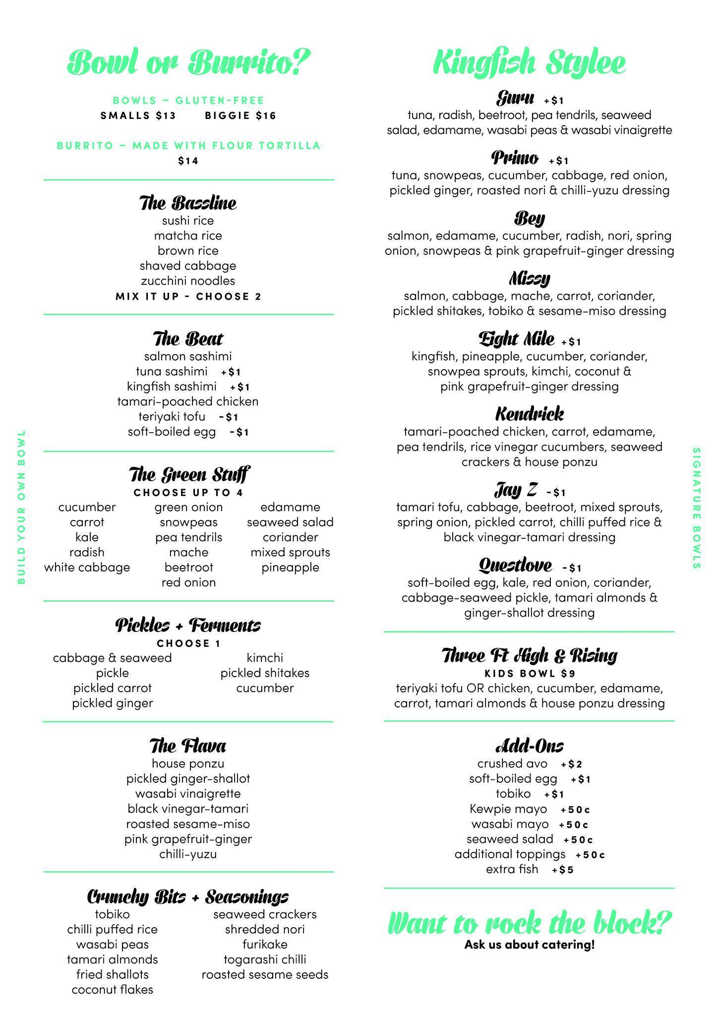 kingfish menu