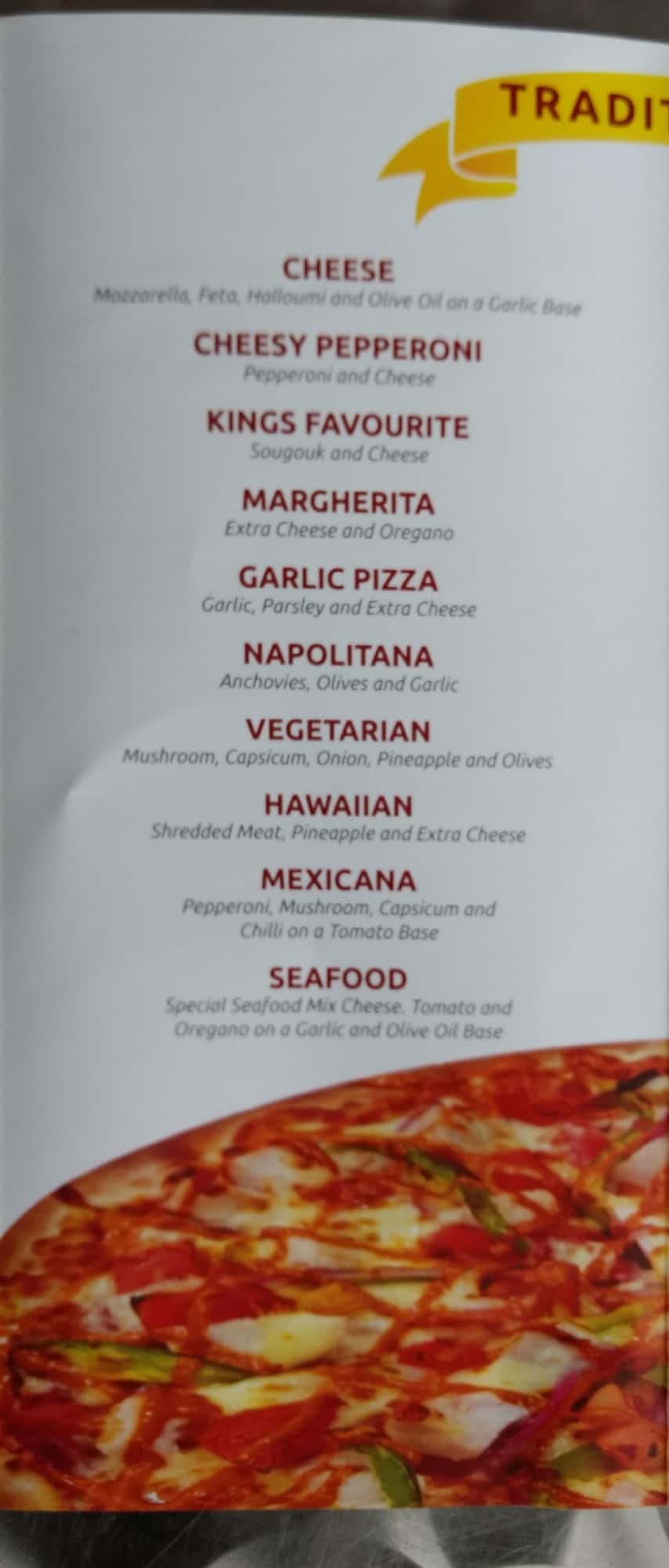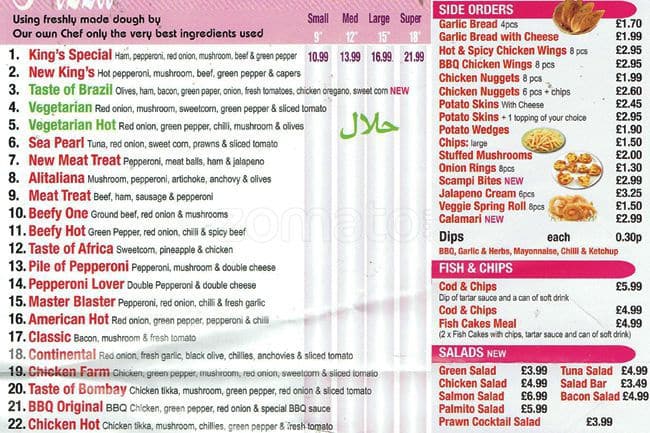 kings pizza menu