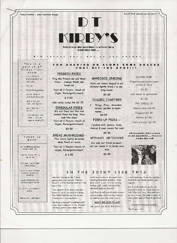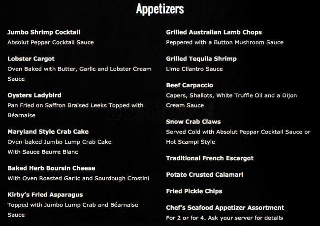 kirby's menu