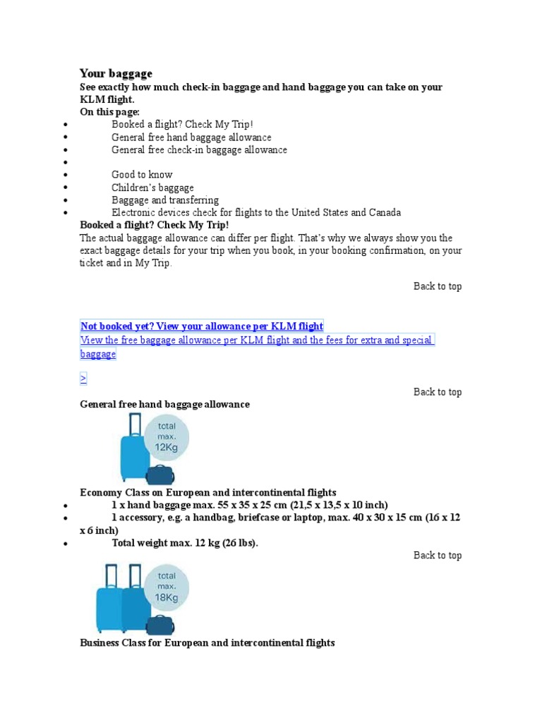 klm business class baggage allowance