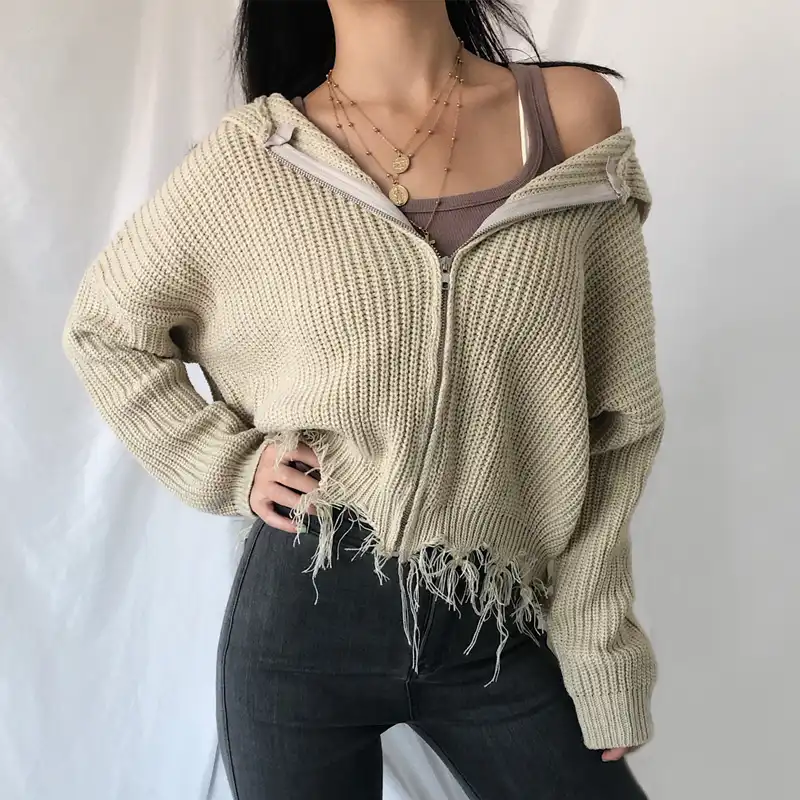 knitted hooded cardigan