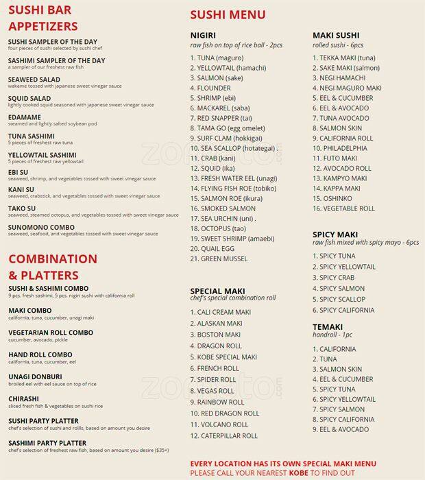 kobe japanese steakhouse menu