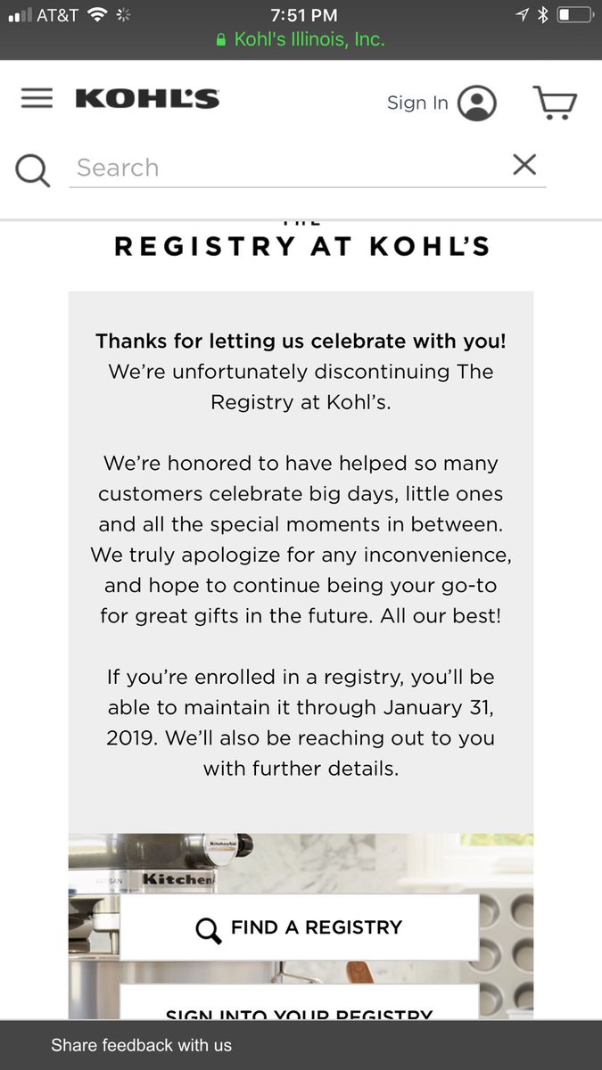 kohls registry