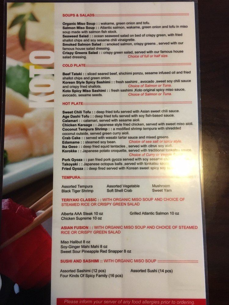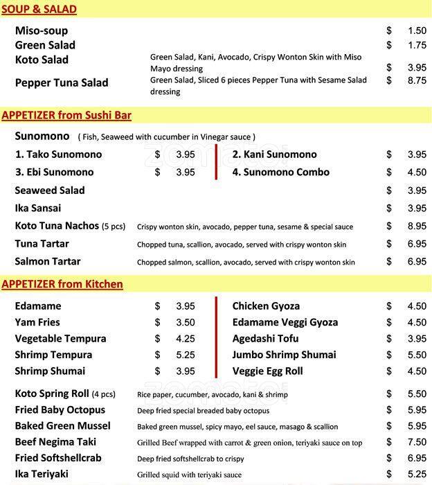 koto menu
