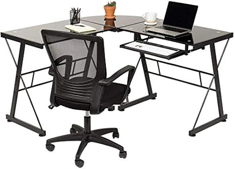 l shaped desk with keyboard tray
