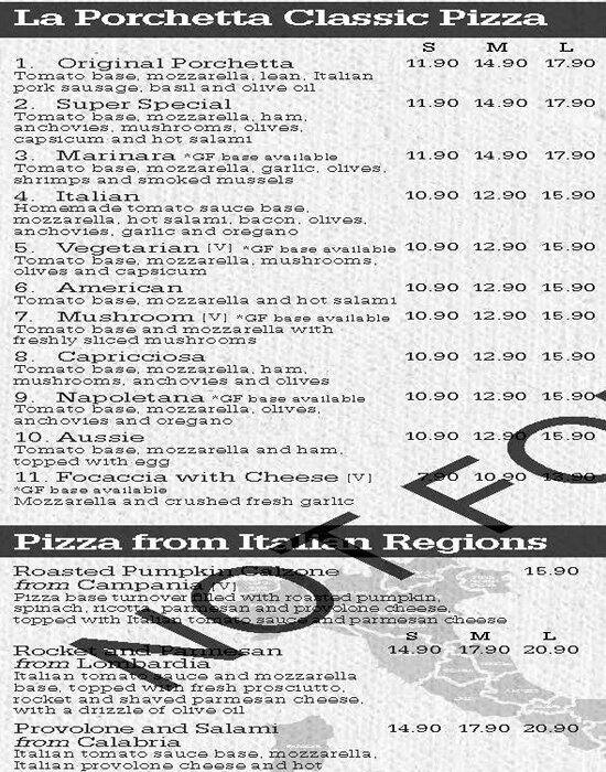 la porchetta menu