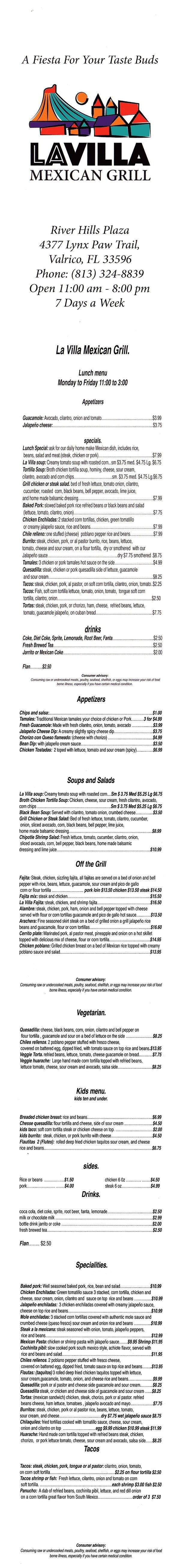 la villa menu
