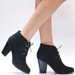 lace up block heel booties