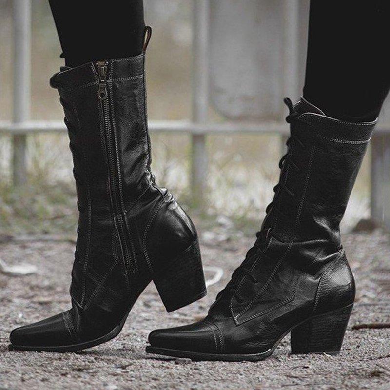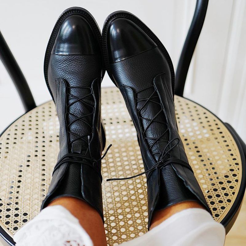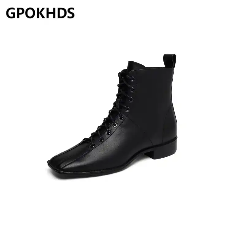 lace up low heel boots