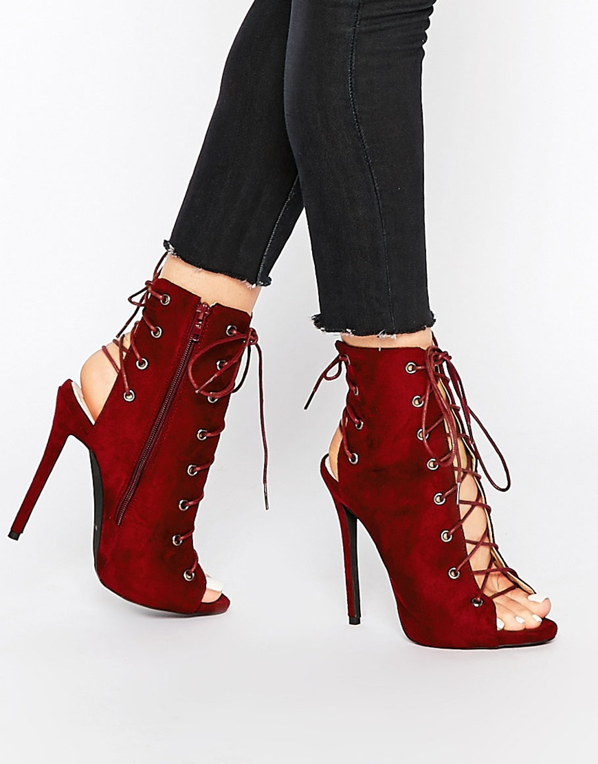 lace up peep toe booties