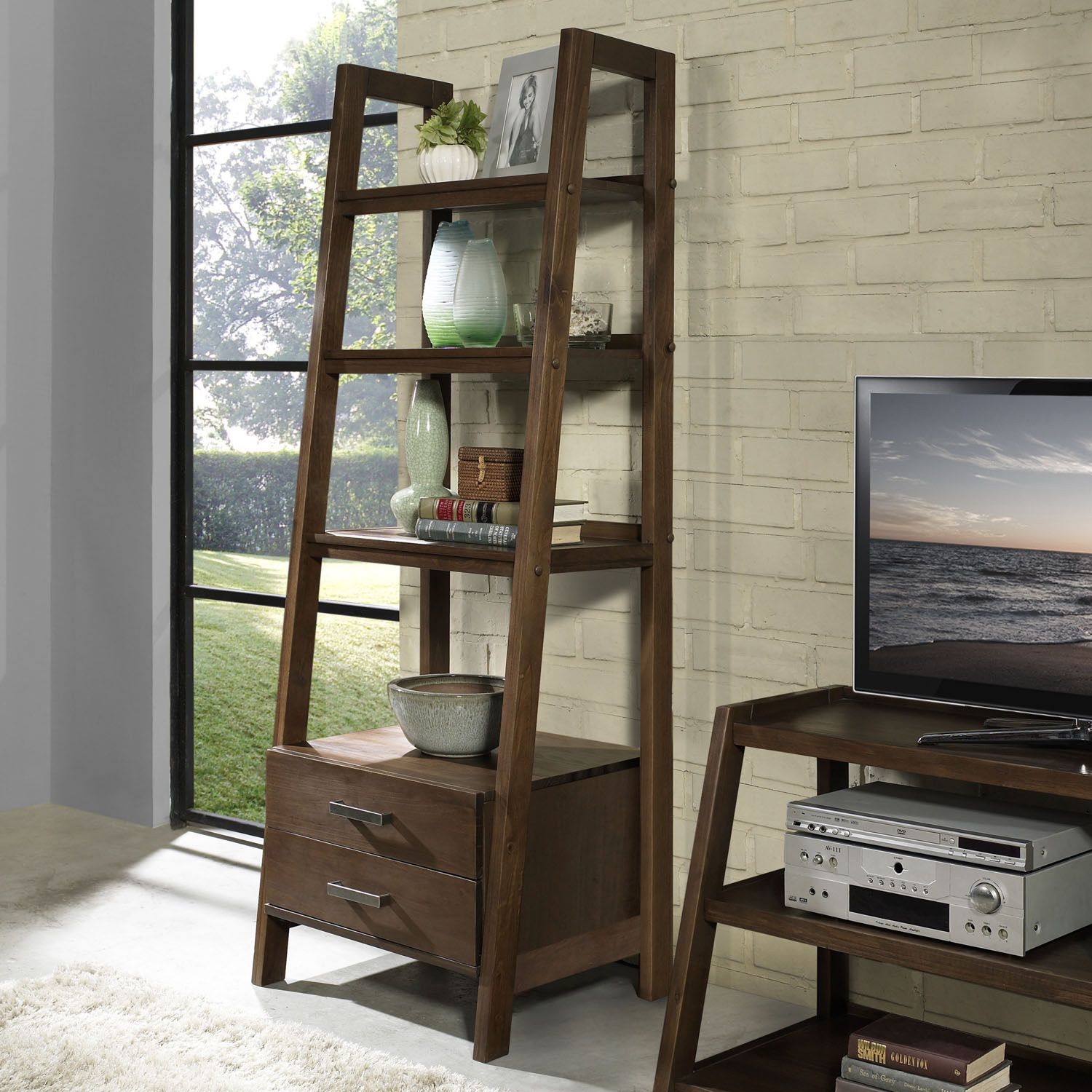 ladder shelves with drawers