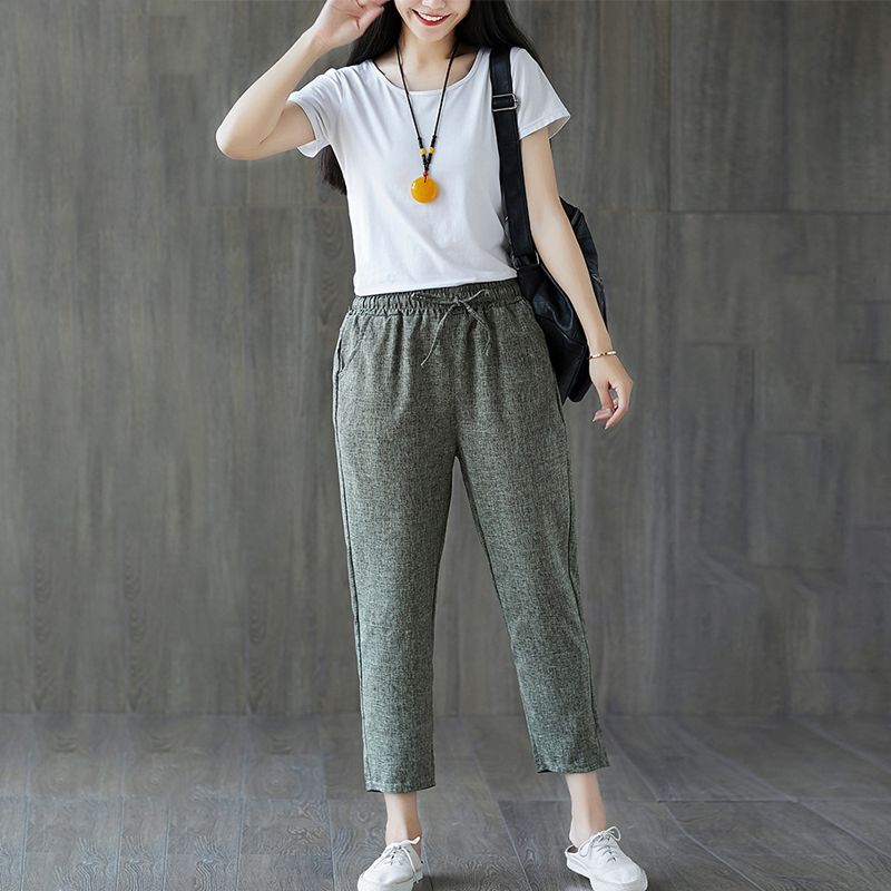 ladies cotton trousers elasticated waist