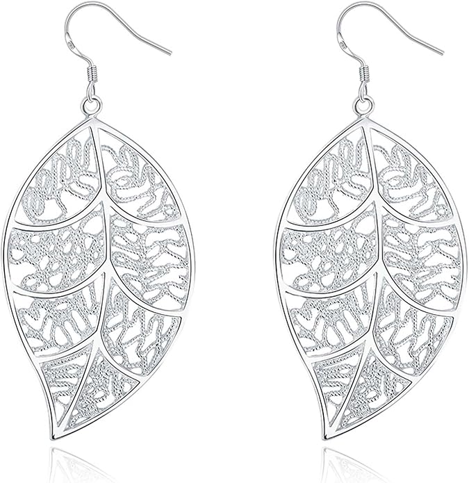leaf silver earrings
