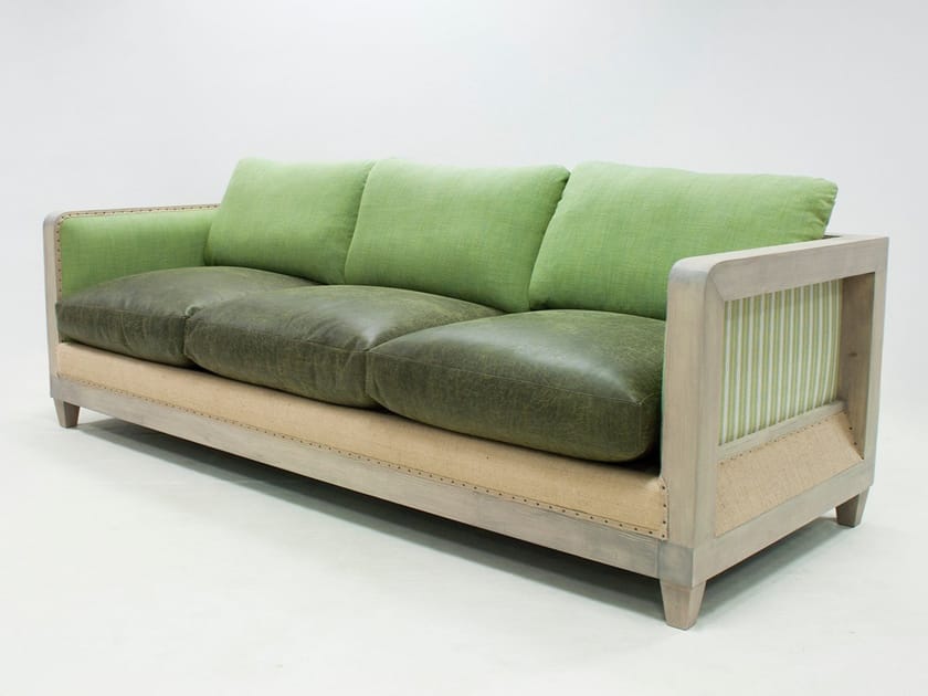 leather and fabric sofa