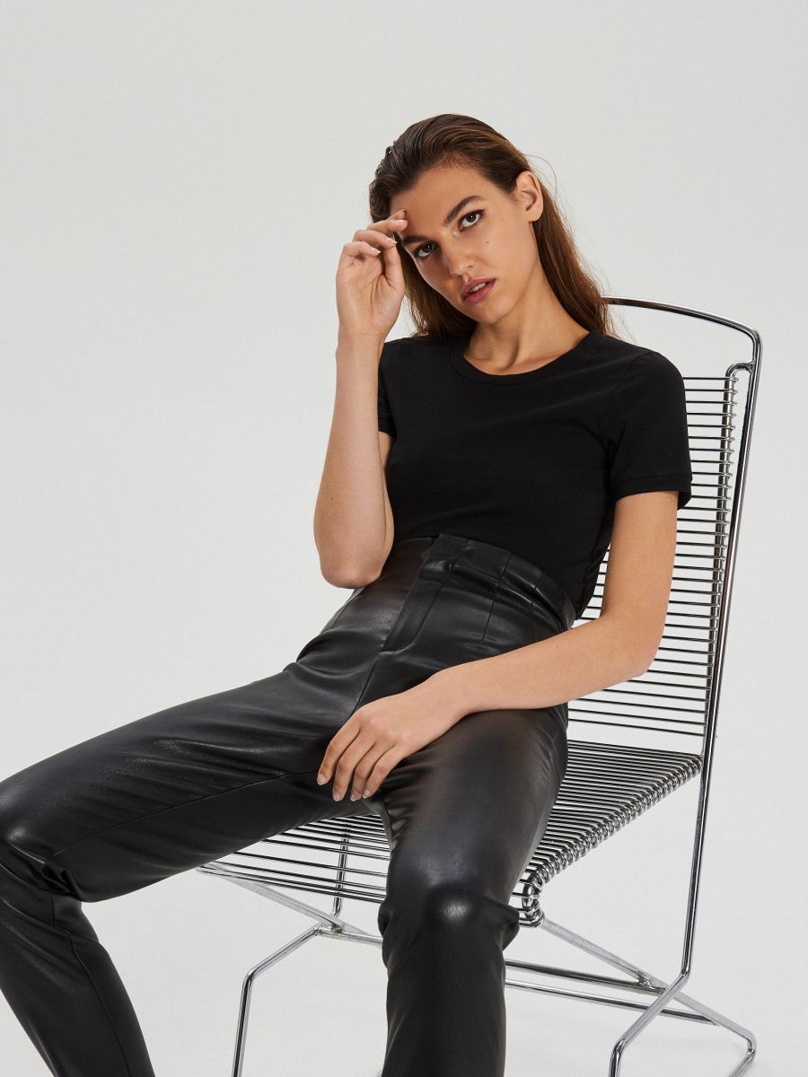 leather high waisted trousers