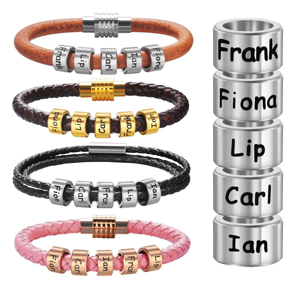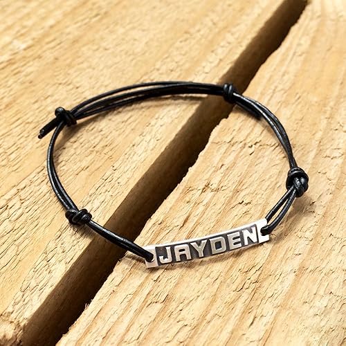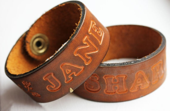 leather name bracelet