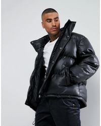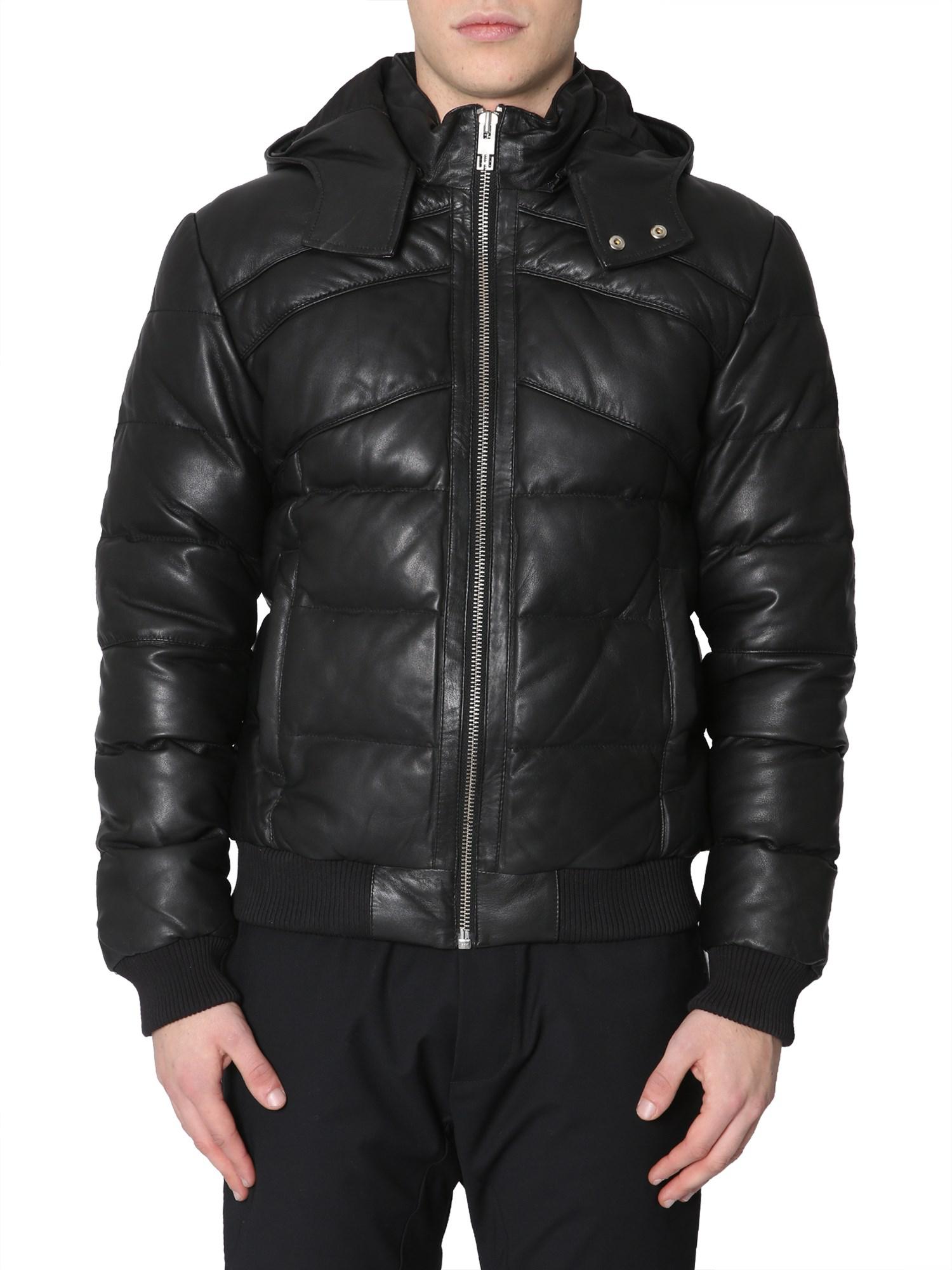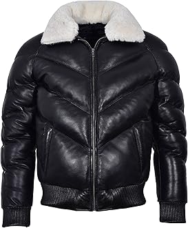 leather puffer jacket men