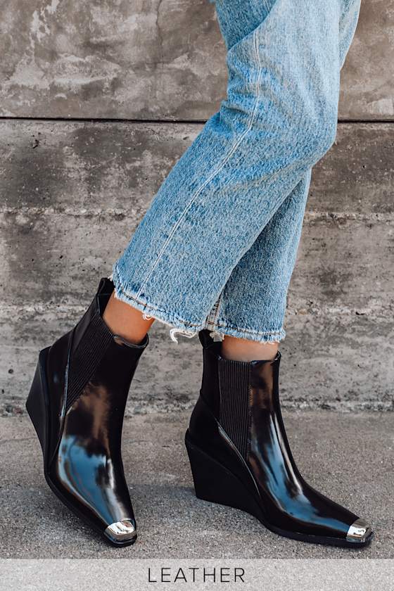 leather wedge boots