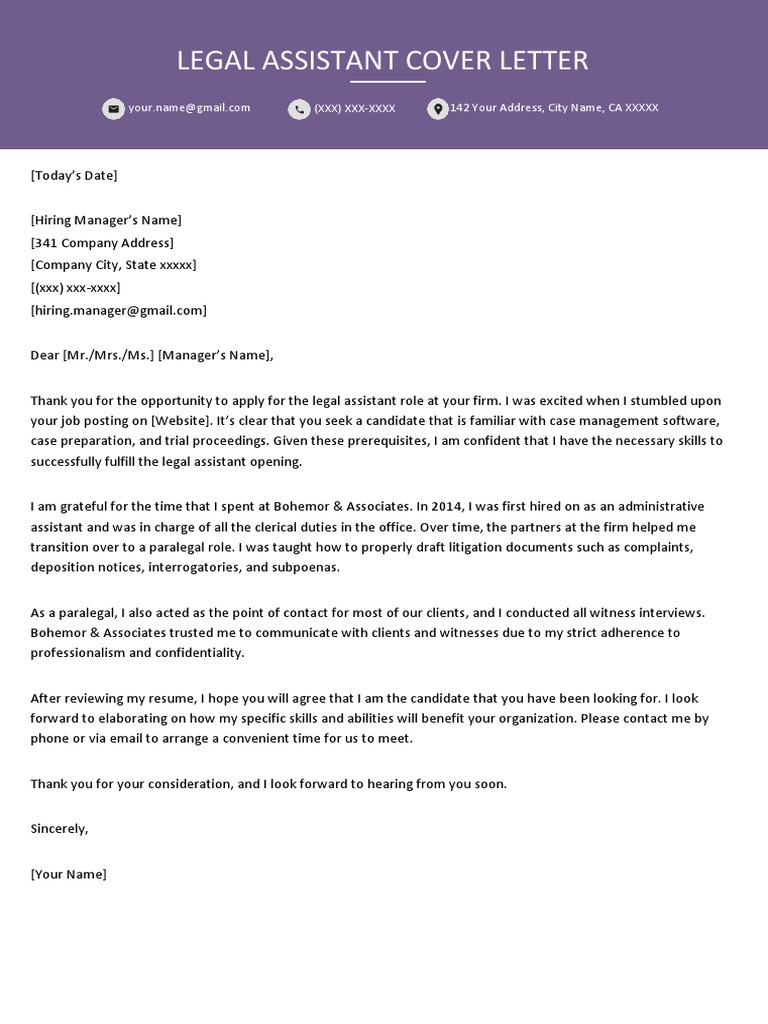 legal assistant cover letter