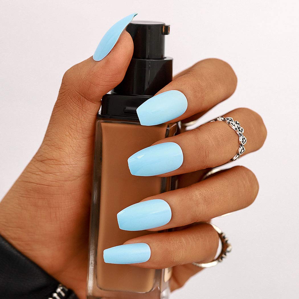 light blue coffin acrylic nails