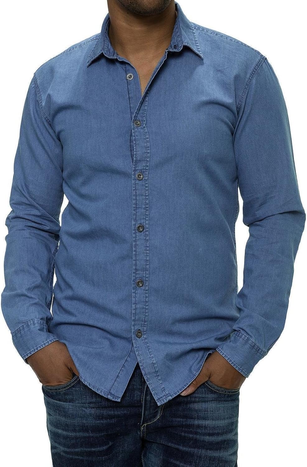 light blue denim shirt