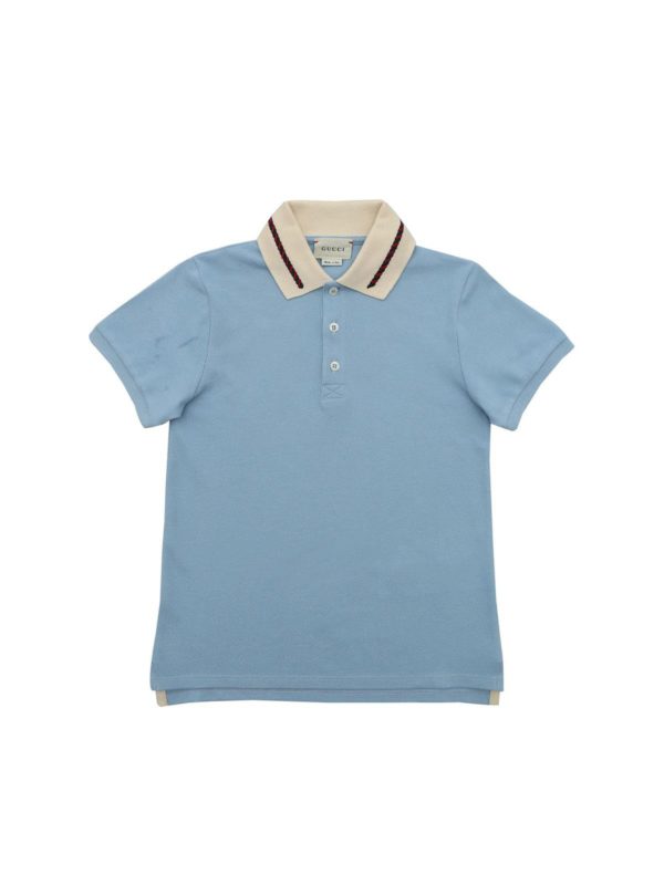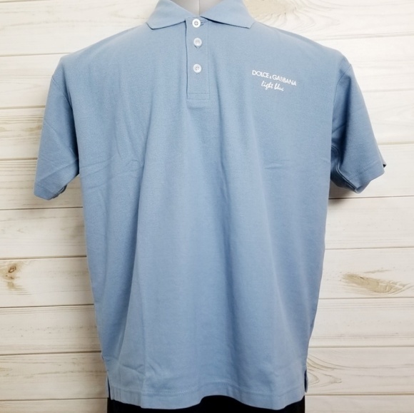 light blue polo shirt