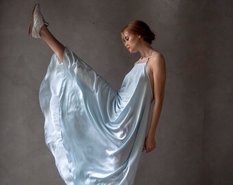 light blue silky dress