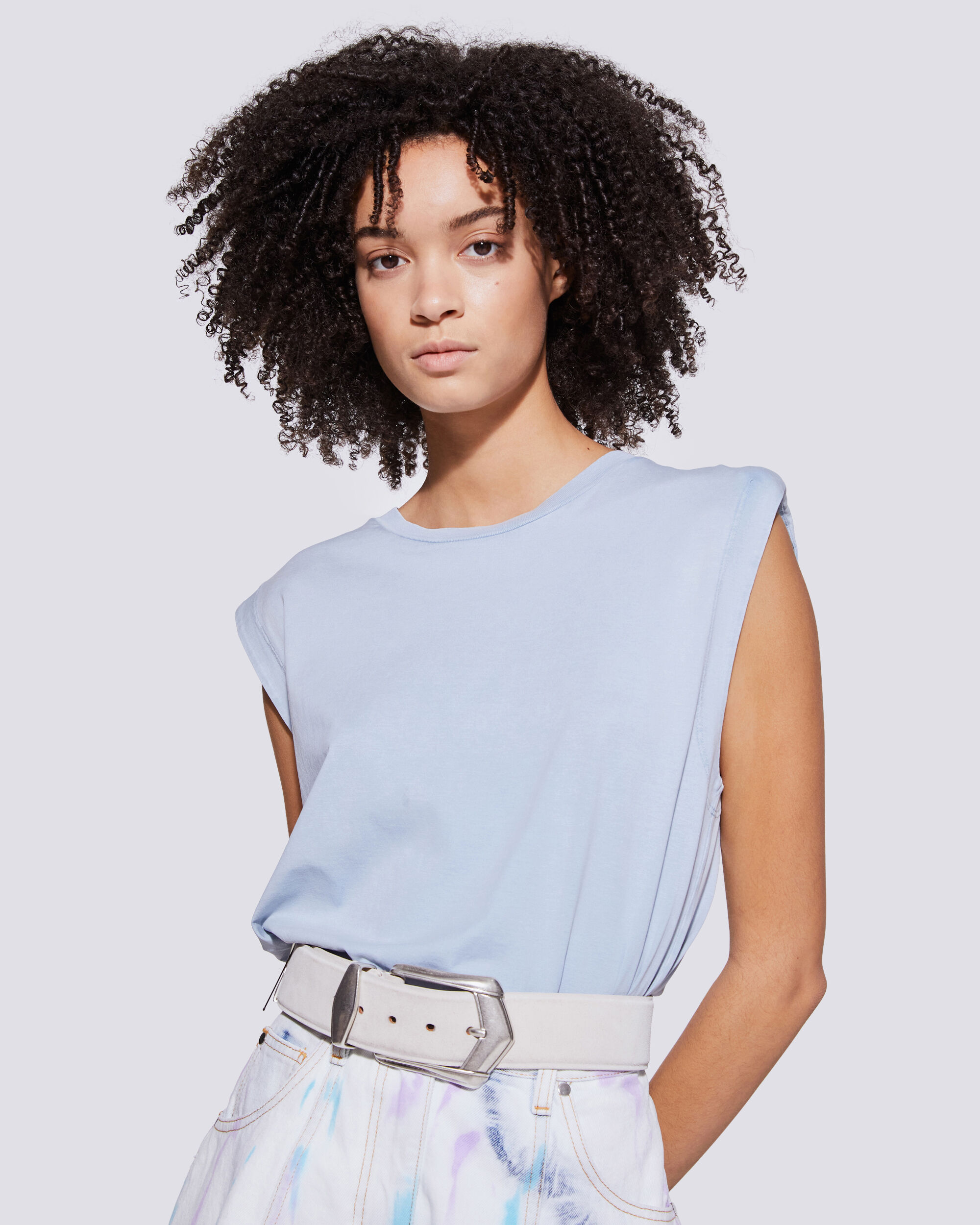 light blue tank top