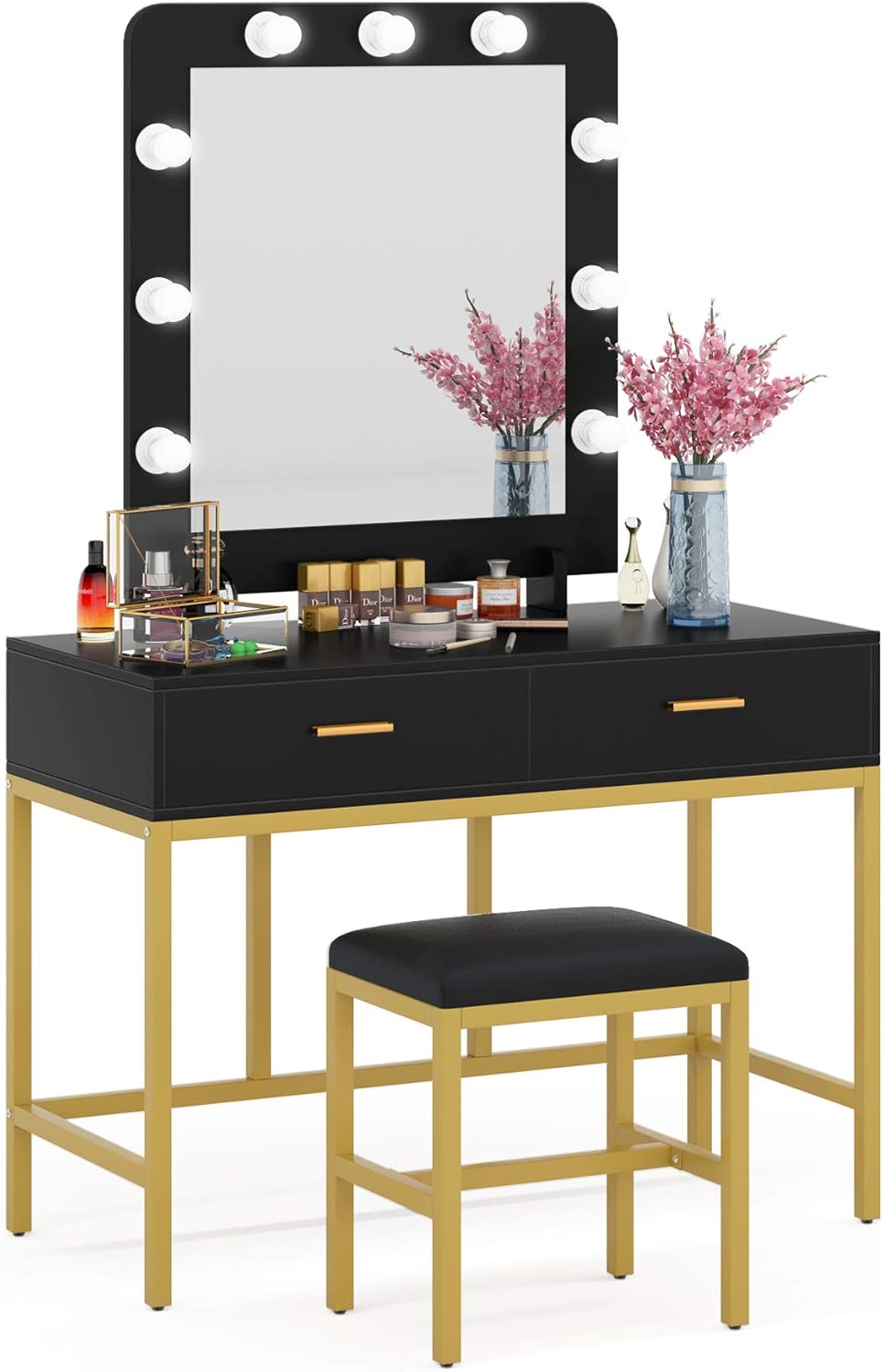lighted vanity mirror table