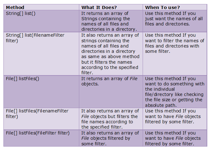 list files in directory