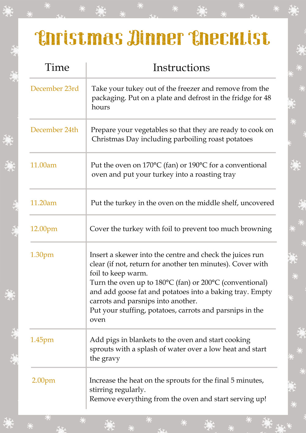 list for christmas dinner