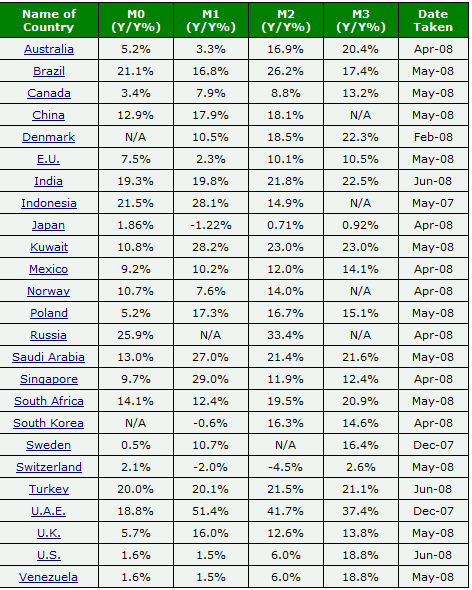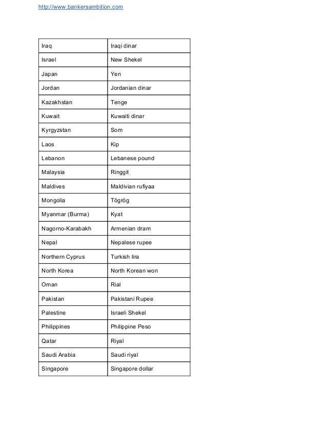 list of currency of different countries with values