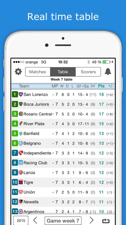 livescore table football
