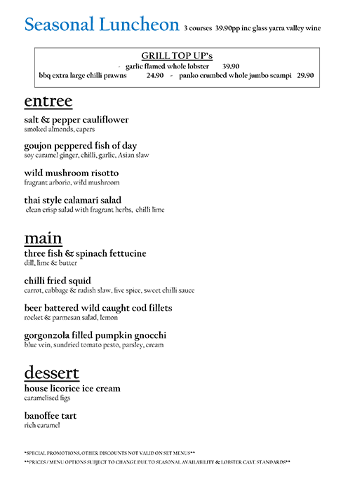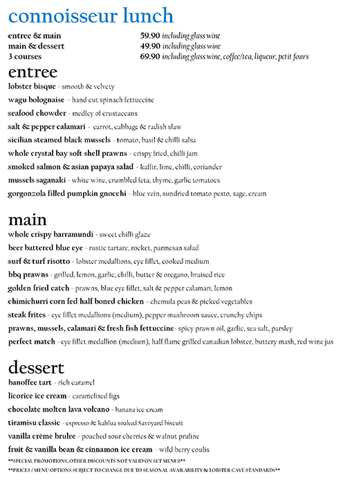 lobster cave menu