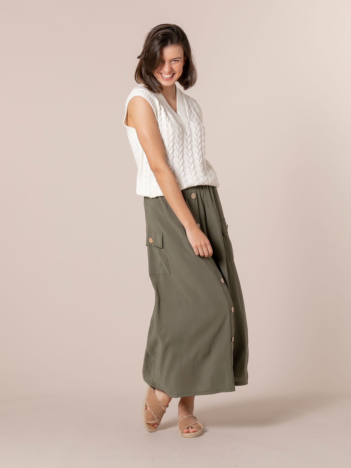 long khaki skirt