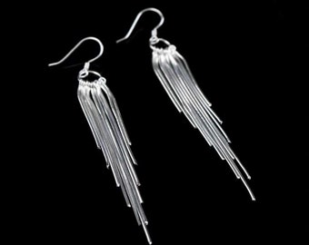long silver earrings